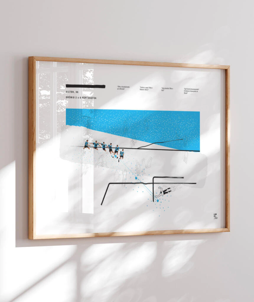 Reviva um momento inesquecível do futebol brasileiro com o quadro Brasil Azul - Final do Campeonato de 1996. A imagem registra uma bomba histórica contra a Portuguesa na grande final daquele ano, um lance que ficou gravado na memória dos torcedores e agora pode enfeitar sua parede com muita emoção e história.
