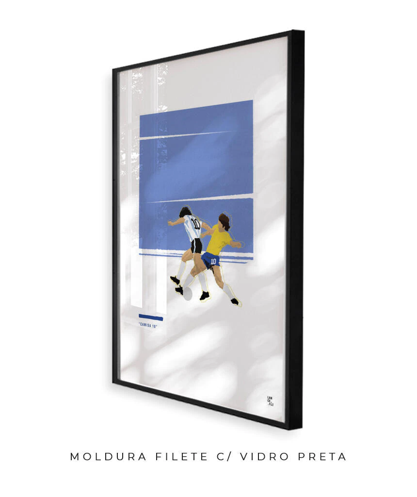 Reviva a essência do futebol brasileiro com o quadro Camisa 10 - Clássico, craque, maestro, mágico. Este produto é uma homenagem aos grandes ícones que vestiram a famosa camisa dez, como Zico e Maradona, eternizando momentos de pura magia em campo. Cada vez que um jogador usa essa camisa, há uma expectativa de craque e liderança, capaz de fazer a diferença em um jogo decisivo.
